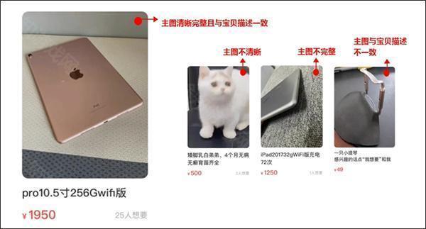 (1)主图需清晰、完整,并真实反映所售商品,有助于提升系统推荐权重。