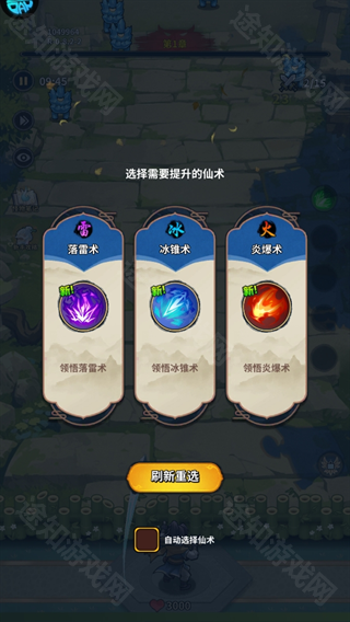 2. 当能量条蓄满后,系统将提供三个随机法术供选择,亦可消耗资源刷新重选。