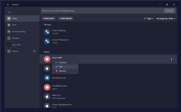 2、访问所有设备的终端,Mac的Termius截图在所有主要的移动和桌面系统