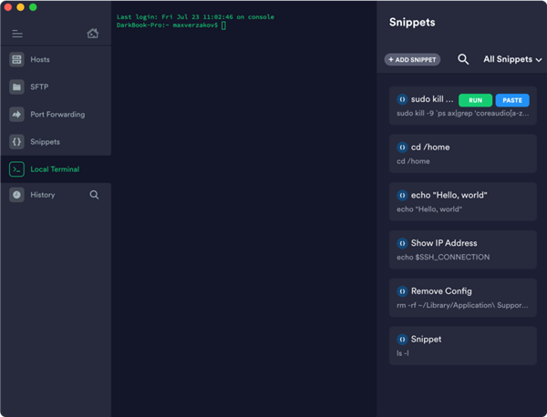 5、支持在不同终端使用 Snippets,将常用命令保存,实现长命令一键输入,提高写作效率。