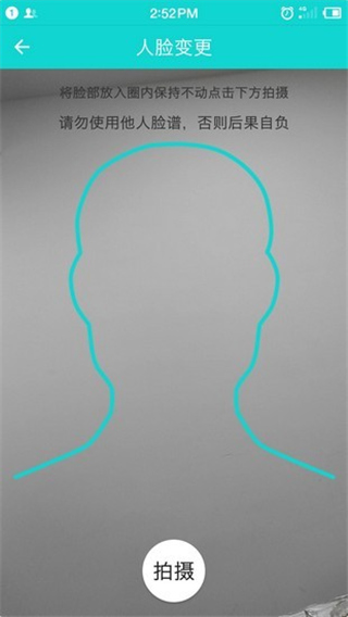 5、将摄像头对着人脸,点击拍摄进行人脸对比,如果提示检测不通过则去办理窗口重新录入照片,如果提示不是本人或匹配度不高,请再试一次,则重新调整位置再试。