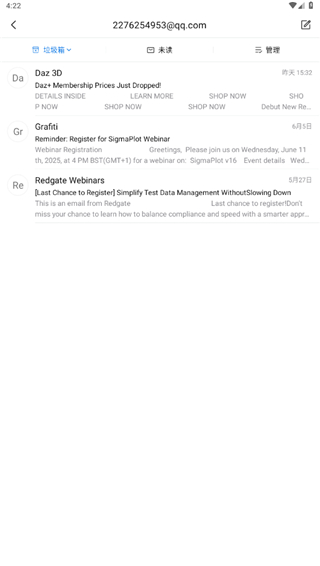 除QQ邮箱外,全面支持添加网易、Gmail、Outlook、企业邮箱等各类账户,所有邮件一屏掌控,切换自如。