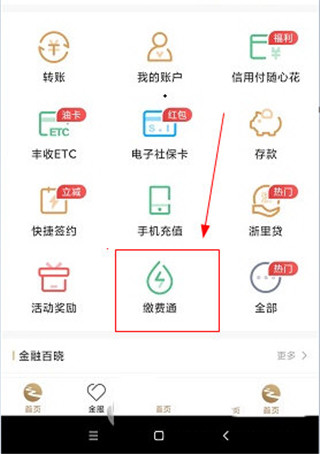 1、在APP首页找到并点击【缴费通】功能入口。