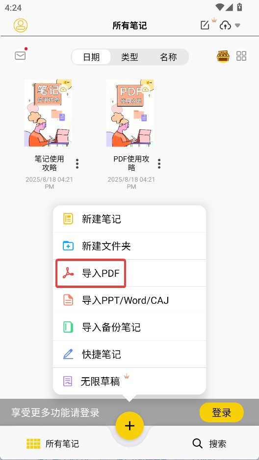 云记笔记怎么导入PDF?