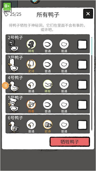 4、若对某只鸭子不满意,可点击左侧鸭子图标将其“牺牲”。