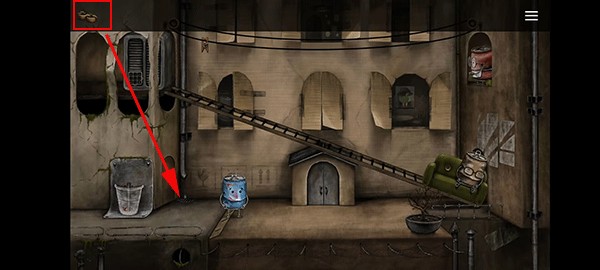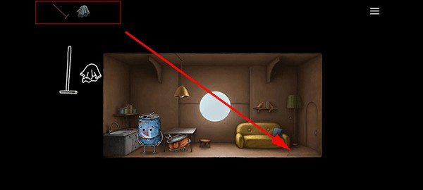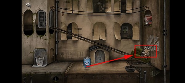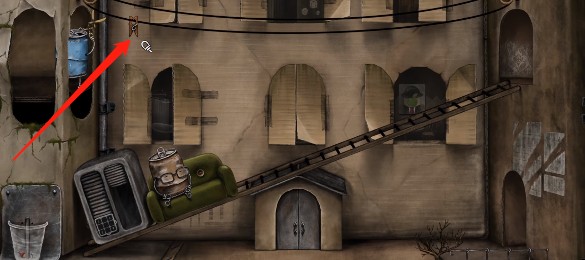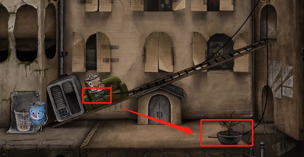10、绳子断裂后会自动连接盆栽和老人,我们将盆栽推下,就可以引导老人回到房间