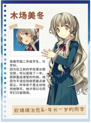 过去对留级一事耿耿于怀,直到遇见开朗热情的千里和跳级的希美后才逐渐释怀。