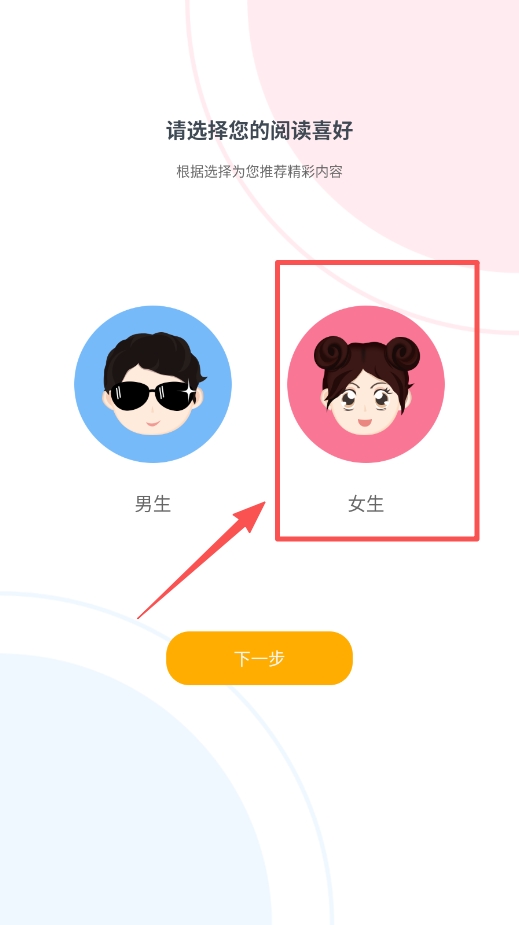 进入主界面后,请选择“男生”或“女生”阅读偏好,系统将据此为你定制专属推荐列表,精准匹配你的阅读口味。