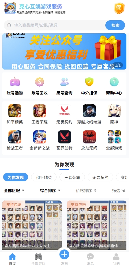 提供找回包赔、平台担保、玩腻换号、不玩回收等多项保障服务,让每一次交易和互动都安心无忧。