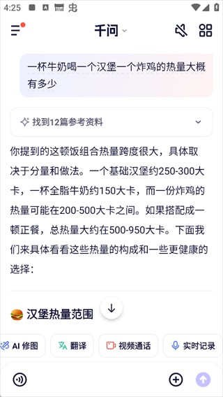 只需输入食物名称或拍照上传,千问即可智能识别并精准计算热量,助你科学管理饮食健康。