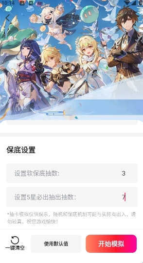 3. 根据个人需求设置已抽次数与保底机制,完成后点击“开始模拟”。