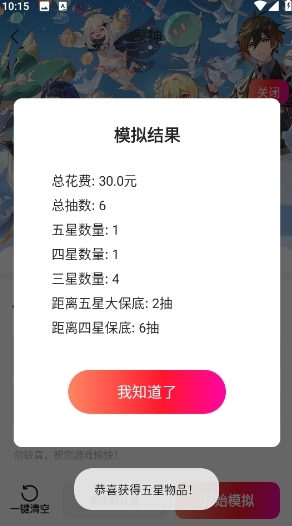 4. 系统将即时生成模拟结果,直观展示抽卡过程与获取角色或道具详情。