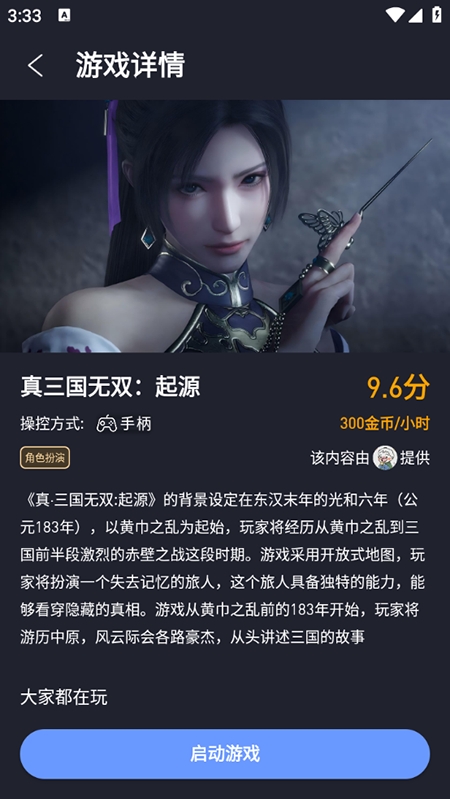 3、找到喜欢的游戏后,进入游戏详情页,点击下方“启动游戏”按钮即可开始畅玩。