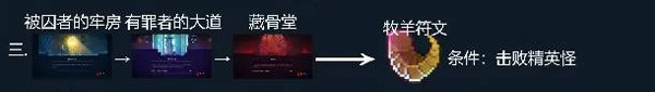 依次通过“被囚者牢房”→“有罪者大道”,使用传送符文进入“藏骨堂”,在特殊区域击败精英敌人后即可获得牧羊符文。