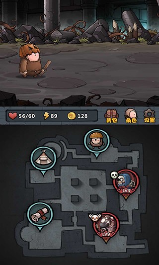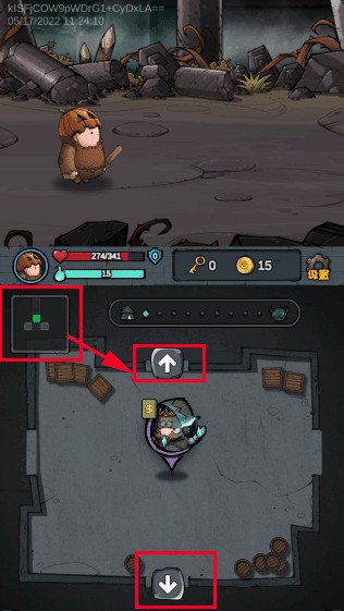 2、游戏界面左下角显示当前地图,通过方向键按钮可在不同区域间自由切换,探索未知楼层。