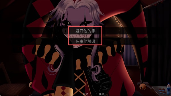 在游戏的某些场景中,你将面临关键选择,如【避开他的手】或【任由他触碰】,每个选择都可能触发不同的剧情走向和结局,决定你与故事的互动方式。