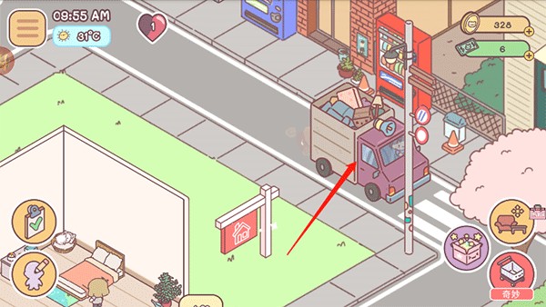 6、走到房屋外,点击街道上的货车,即可出售不再需要的物品,换取资源。