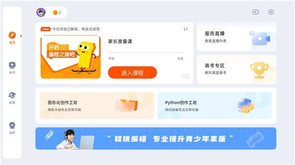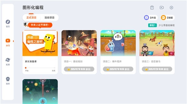 5、完成相应课程解锁后,每天可观看对应的项目学习视频内容,循序渐进掌握编程技能。