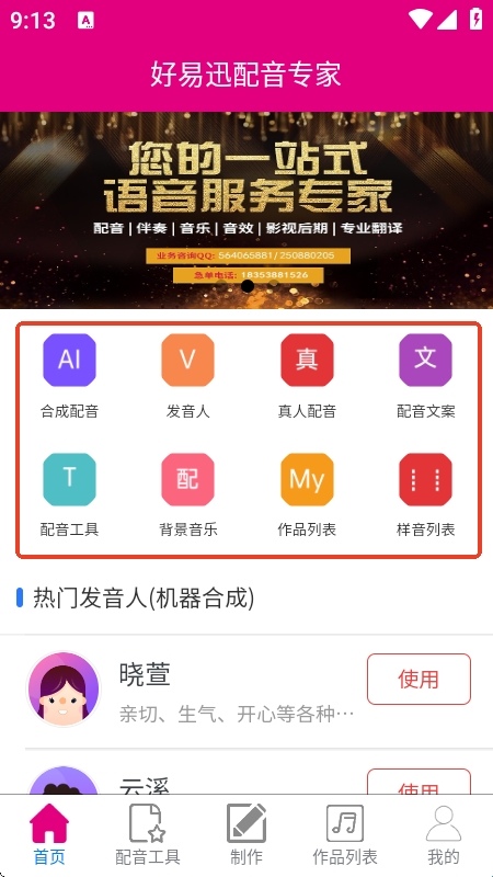 进入首页即可浏览丰富的功能入口与模板资源,快速开启配音之旅。