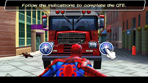 蜘蛛侠全面混乱的战斗节奏酣畅淋漓,每一次出拳都伴随着扎实的打击反馈,令人热血沸腾。当敌人发动攻击时,角色头顶会出现闪电提示,及时点击即可触发闪避并衔接反击,打出一连串华丽连招。整体体验如同翻阅一本动态漫画,沉浸感十足,让人欲罢不能。