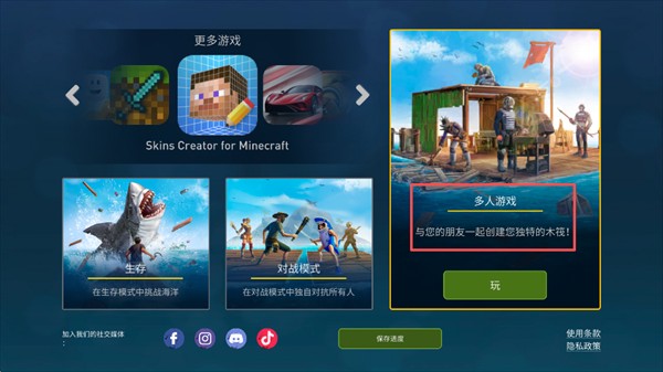 1、打开木筏生存,在多人在线游戏下方点击玩
