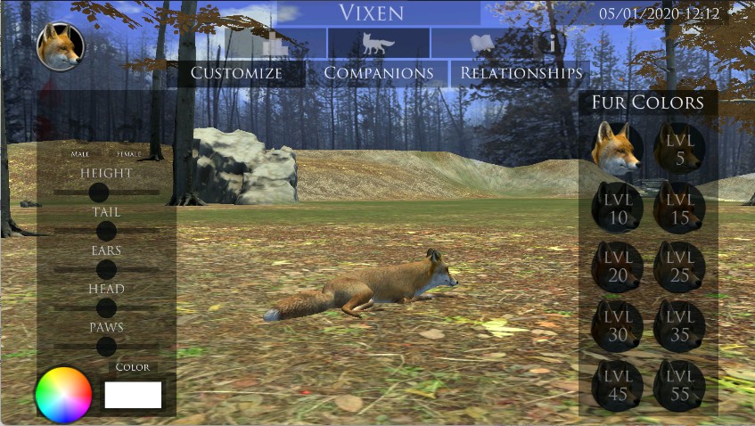 在外观编辑界面中,玩家可以自由调整狐狸的皮毛颜色、体型以及其他外观细节,打造属于自己的独特野狐形象。