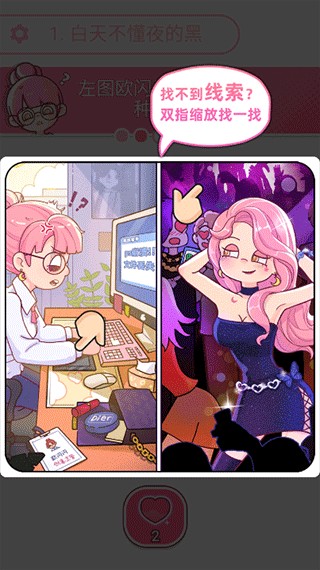 遇到难以辨识的细节时,使用双指放大图片仔细观察,很多隐藏线索需要放大才能看到。游戏内置提示系统,卡关时点击爱心标识可获得渐进式提示。