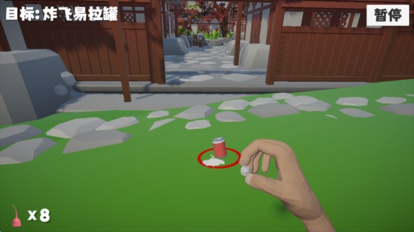 2、燃放类鞭炮需左手控制点火,右手控制投掷方向。注意:投掷时需略微向右上方偏移,才能精准命中目标。