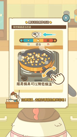 制作阶段:利用煎锅将玉米加工成多样化的爆米花;解锁并收集食谱,制作口味独特的新品种。
