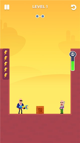 丰富的关卡设计与隐藏彩蛋:许多关卡暗藏玄机,部分墙体背后设有可破坏通道,巧妙利用反弹子弹可触发隐藏区域,发现秘密宝箱。界面信息清晰直观——顶部进度条显示当前波次,左侧显示剩余子弹数,右侧图标则反映技能充能状态,助你随时掌握战局。