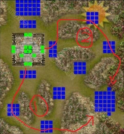 第73关 刺杀刘武周 双出生点设计:红1出生则走红色数字路线。按红蓝序号依次剿灭营寨,刘武周位于6号点。刺客一旦离开营寨即任务失败;巡逻步兵在8格内无我方单位则不触发伏兵。 前两人随侯尚执行刺杀,建议选单体爆发或清兵型角色;其余作为援军待命于右侧大门外。击杀刘武周后援军与各营寨敌军刷新,刺杀组向右门移动,柴绍与侯对话触发全军撤退,各营寨伏兵出现。全员退至右侧最末格过关,柴绍习得“神机神算”(辅助法术命中+20%)。二周目全灭奖励柴绍发展点,皮肤额外+2点。