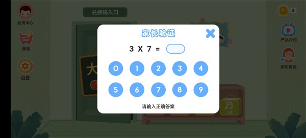 2、会弹出一个家长身份认证的数学公式,输入计算结果;