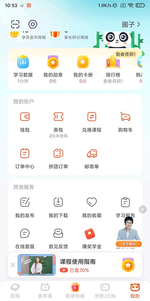 5、已购课程统一归集在“书房”或“已购”页面,支持制定个性化学习计划、参与话题讨论、加入兴趣圈子等互动功能;