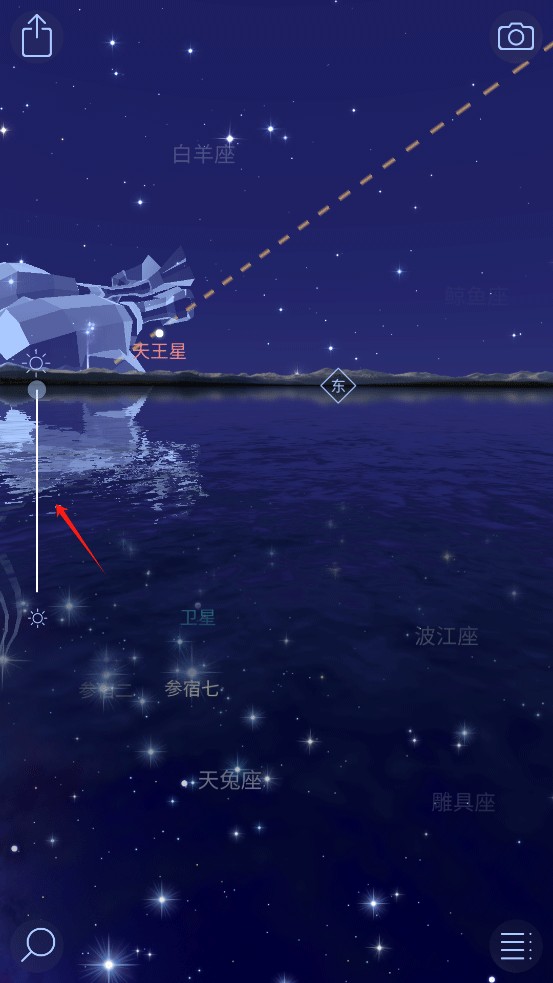 4、在观测星空的过程中,用户可以通过左侧面板调节亮度;同时点击右上角的相机图标,还能开启增强观星效果,让星图更加清晰。