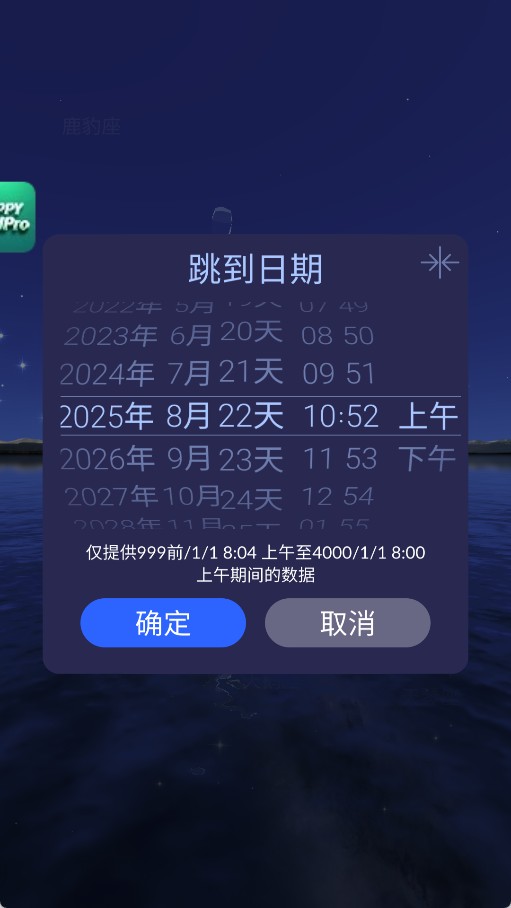 2、如果需要快速查看特定日期的天象,可长按右上角,直接跳转至目标日期。