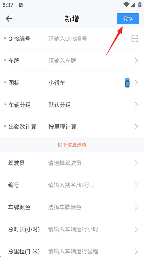 4、填写完整的车辆信息,确认无误后点击【保存】即可完成绑定。