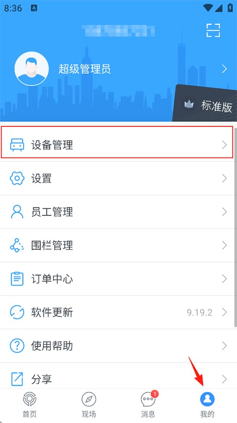 1、打开安智连APP,进入【我的】页面,点击【设备管理】;