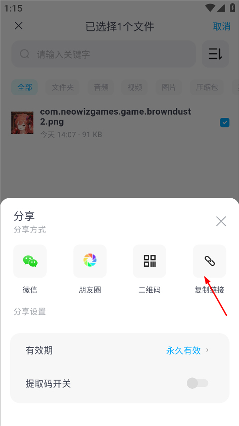 3、在弹出选项中选择分享方式,支持微信、链接或二维码等多种形式,操作简单快捷。