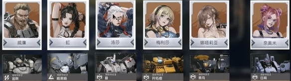 2、虹搭配格莱杨机兵,娜塔莉亚适配青鸟机兵,全员高稀有度组合,战力上限极高。
