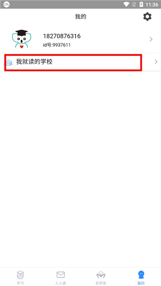 2、进入“我的”页面后,点击顶部的“我就读的学校”;
