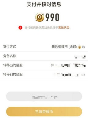 5、选择需转出的账号及目标平台(如iOS),确认信息无误后提交,支付990荣耀币即可启动转移流程。