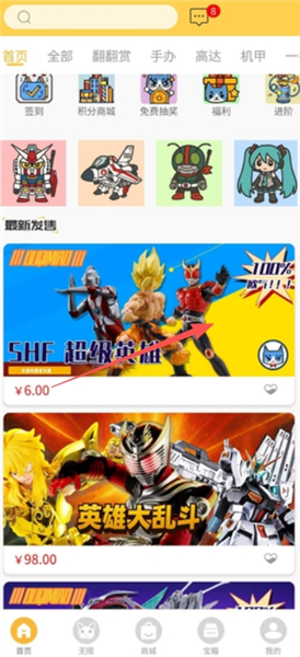 欧气喵一番赏——模玩手办盲盒购物平台全新升级!涵盖高达、龙珠、假面骑士、鬼灭之刃、碧蓝航线、新世纪福音战士、从零开始的异世界生活等超多热门IP,货源正规、更新迅速,助你轻松邂逅梦中情胶。新用户注册即赠大额优惠券礼包,免费抽模型活动不间断,签到积分可兑好礼,邀请好友更有额外奖励,福利真实丰厚。平台创新引入抽盒式购物模式,并配套玩具交换、回血置换、收藏日历等特色功能,致力于为玩家带来更丰富、更有趣的模玩体验。