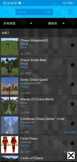 4、如使用“混沌模组”(Chaos)未生效,请将其资源包与行为包移至列表最上方。该模组可在软件内搜索“Chaos”,选择第一个结果即可。