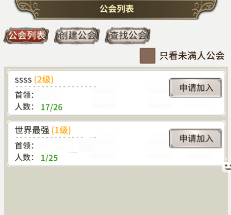 - 退出公会后技能失效,再加入新公会时保留已升级技能。