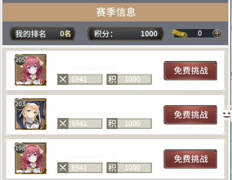 - 队伍满3人后由队长报名,开赛后不可更换成员;初始积分1000(保底),挑战次数初始3次,每2小时恢复1次,上限6次;