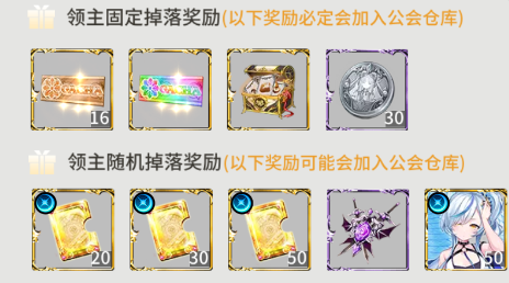 - 成功击杀获公会仓库奖励(含固定与随机掉落);