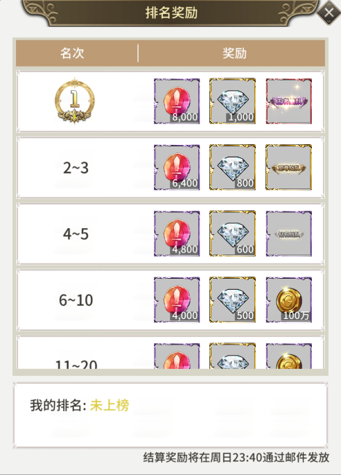 - 按伤害排名发放结算奖励,击杀者额外获奖励,公会得经验;