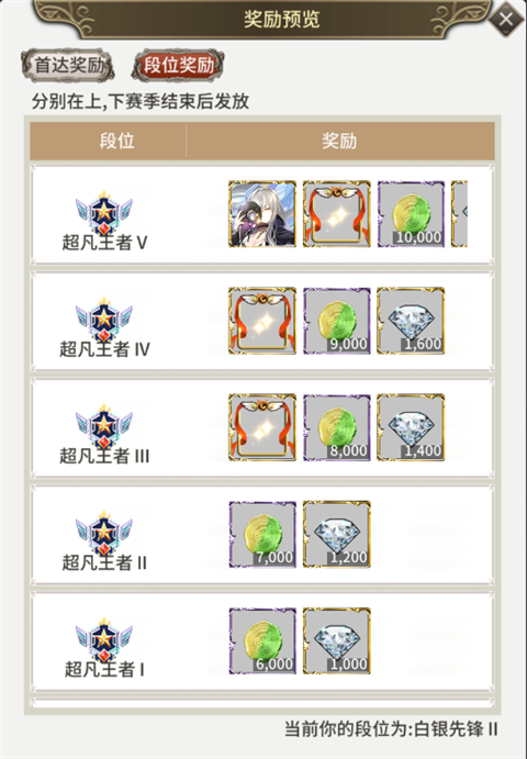 - 赛季结算:上下半赛季均发结算奖励;“超凡王者III”以上获【亡灵之主】幻化外观与头像框;赛季总榜前6得强力称号;赛季结束后重置排名,按当前段位继承新赛季初始段位;历史前6玩家记录于【赛季传奇】。