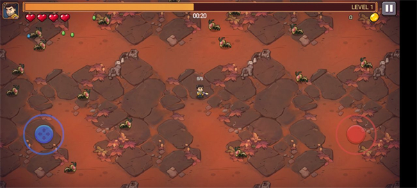 - 操作方式直观:左侧蓝色区域控制角色移动,右侧红色区域负责瞄准与开火。