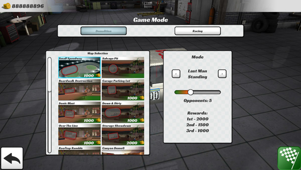 - 安装并启动游戏后,从车库中挑选一辆心仪的赛车,开启你的破坏之旅;